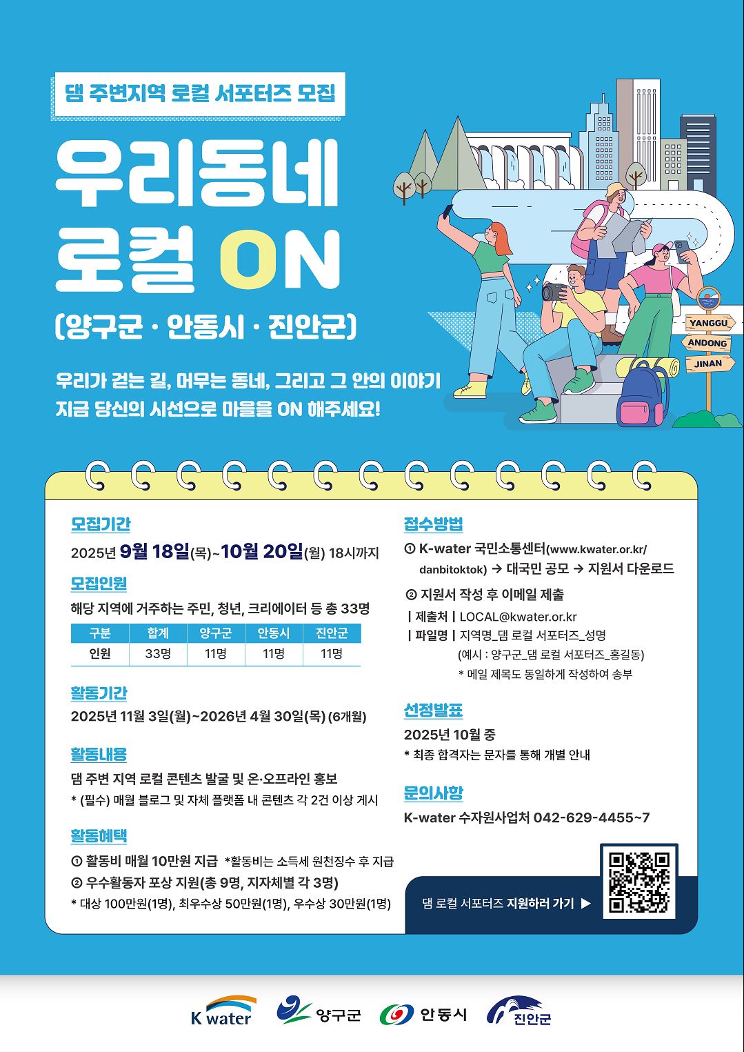 K-water 댐 주변지역 로컬 서포터즈 모집(~10.20)