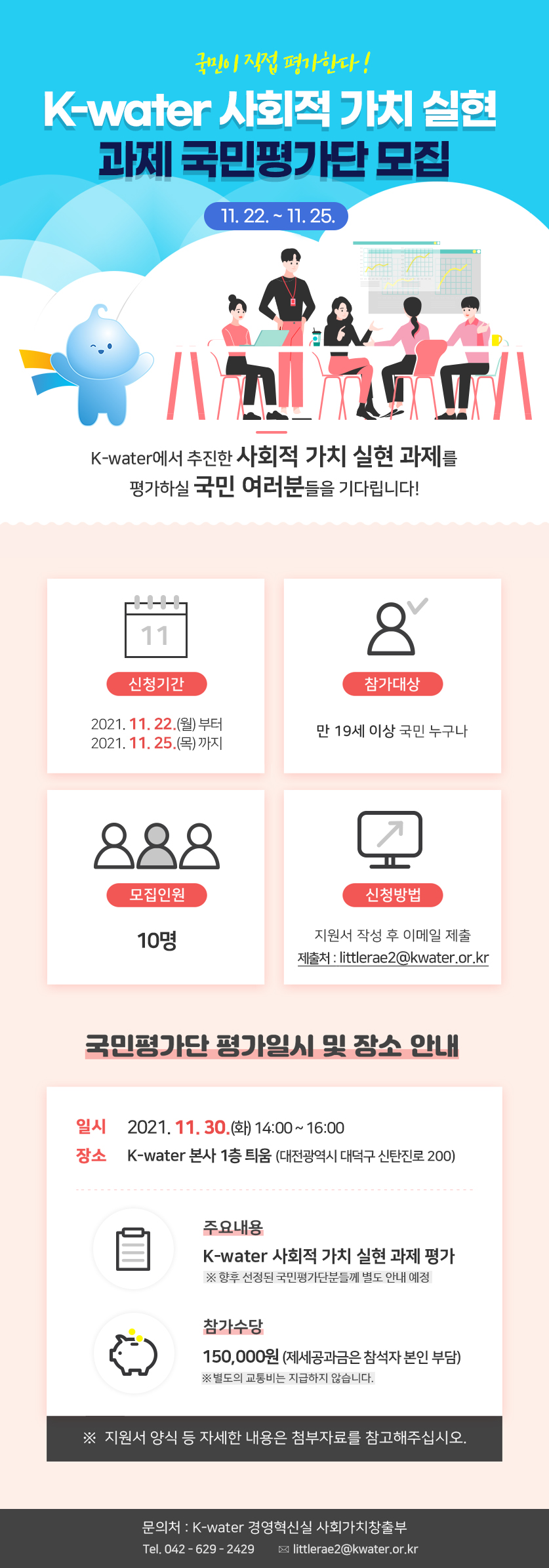 K-water 사회적 가치 중점과제 국민평가단 모집 안내('21.11.22.(월)~'21.11.25.(목))