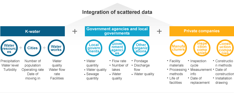 Allotment of data currently owned by K-Water is estimated to be more than 37,000 GB and 60,000 data on water resources /min. and 370,000 data on waterworks /min. are acquired in real time through automatic measuring equipment on field.